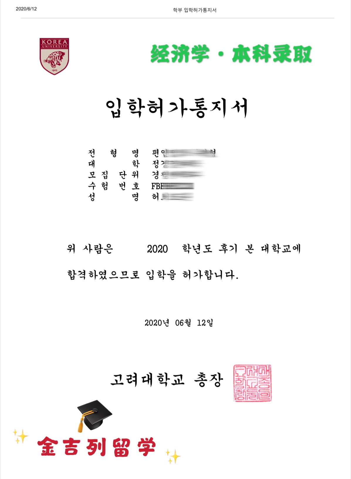 韩国留学 | 高丽大学经济学专业本科插班录取案例