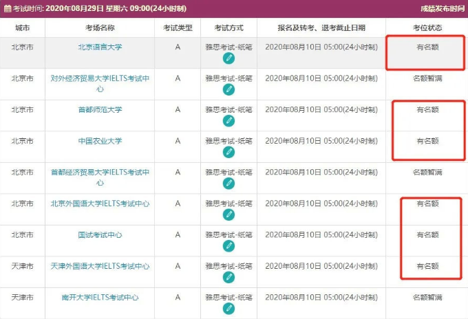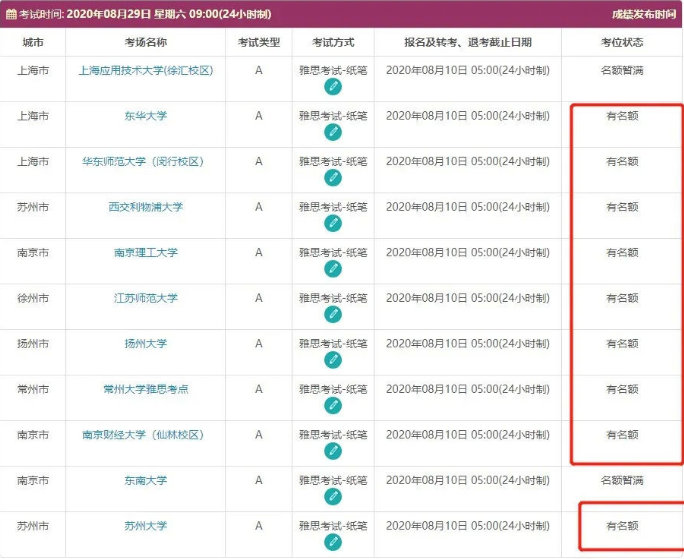 当然,以上只是部分截取,如有考位变动,以雅思官网的数据为主。
