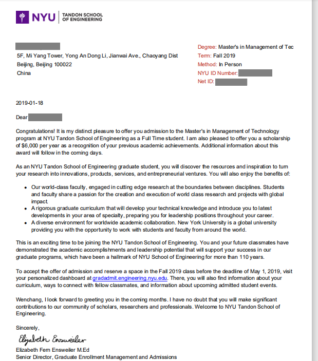 New York University Management of Technology