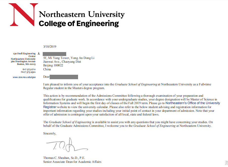 Northeastern University Information Systems, MS