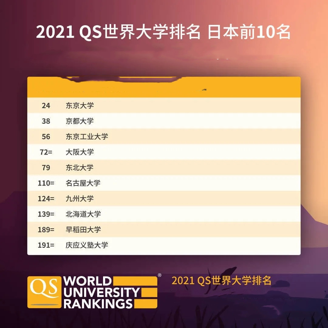 最后附上日本最新前10名的大学世界排名状况!以供参考!