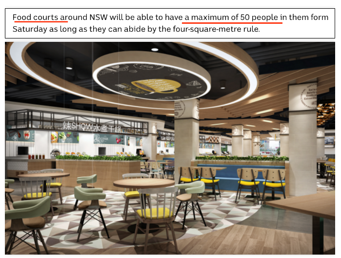 并且只要遵循“4㎡1人”的规定,健身房和美食广场也将重新开放!