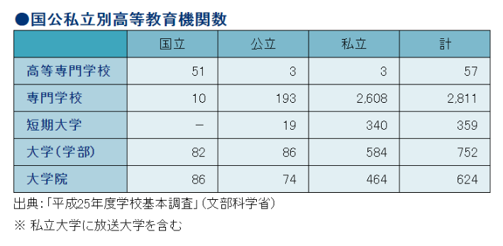 其中根据设置者的不同,又分为 国立、公立 和 私立 。