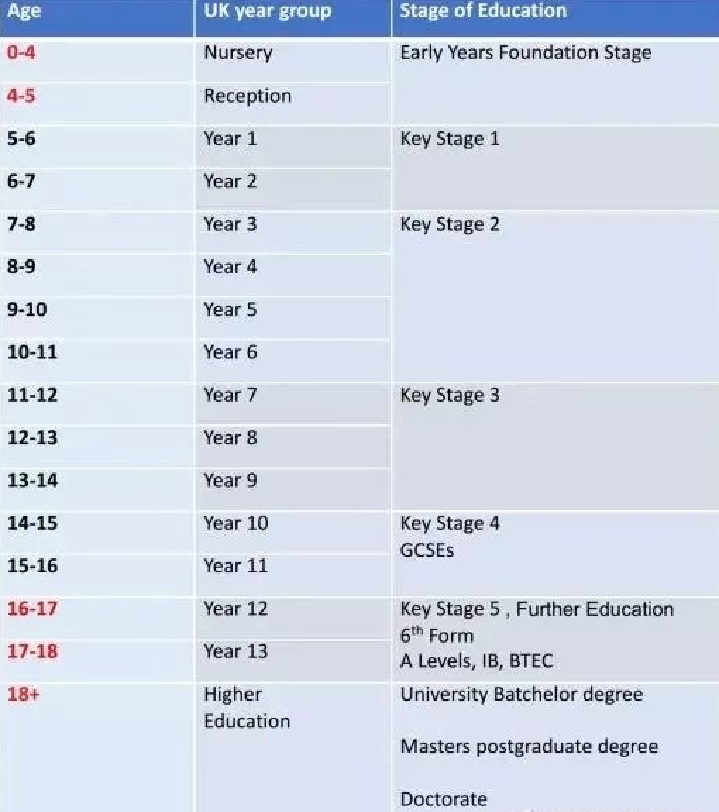 这个阶段就是图中Key Stage 3和Key Stage4这两个阶段,相当于国内的中学阶段,大概是孩子在11-16岁的时候。