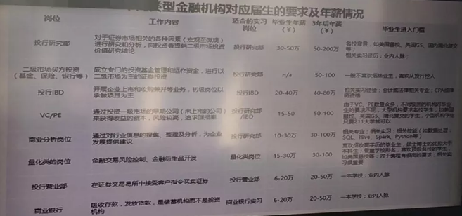 俞老师之前看过一张图,是 国内不同类型的金融机构对应届生的要求及年薪情况~