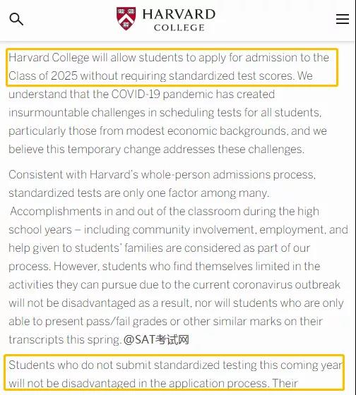 但对于国际学生,哈佛大学依然希望学生能提交相关考试的预期结果。