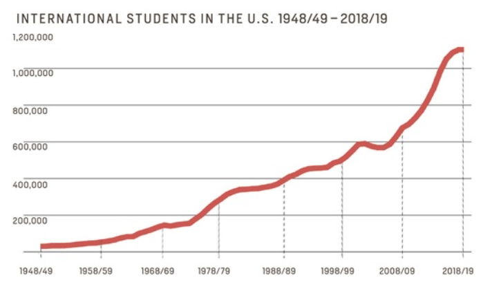 △图片来源: https://www.iie.org/-/meia/Images/Programs/Open-Doors-Infographics-2019/International-Stuents/International-Stuents-in-U,--,S,--,-Over-Time-2019.ashx?h=532.364&w=585&la=en&hash=967BF25ED171D27EFAD07D25BE67D2D8B628267F