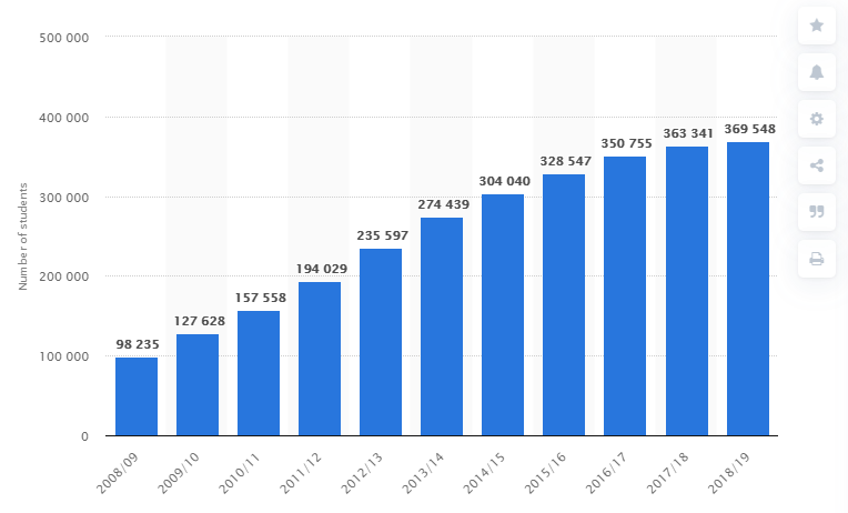 △图片来源:https://www.statista.com/statistics/372900/number-of-chinese-stuents-that-stuy-in-the-us/