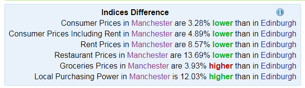 numbeo.com比较曼城和爱丁堡的消费水平,曼城整体更低。 虽然贵一点,美丽爱丁堡依然深得学生的喜爱, 爱大在读学生中留学生比例高达36%。 如果你喜欢古老的文化,梦想在苏格兰畅游天地,爱丁堡绝对是你的不二之选。