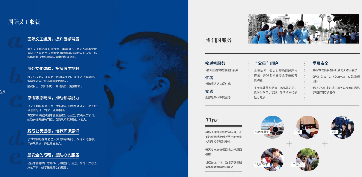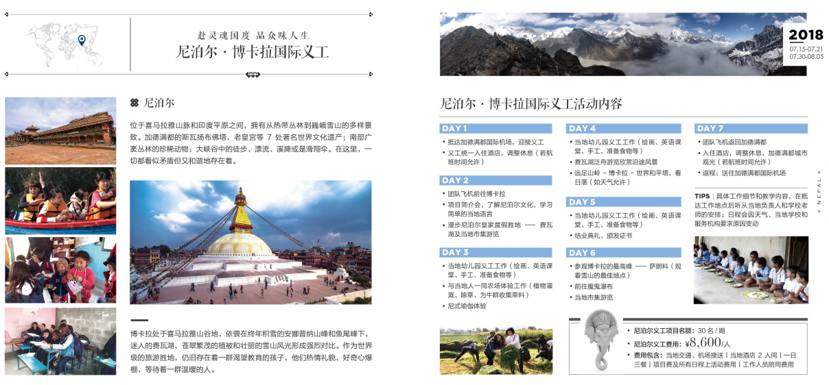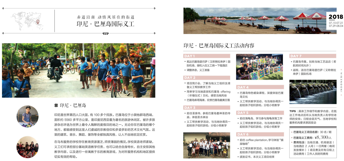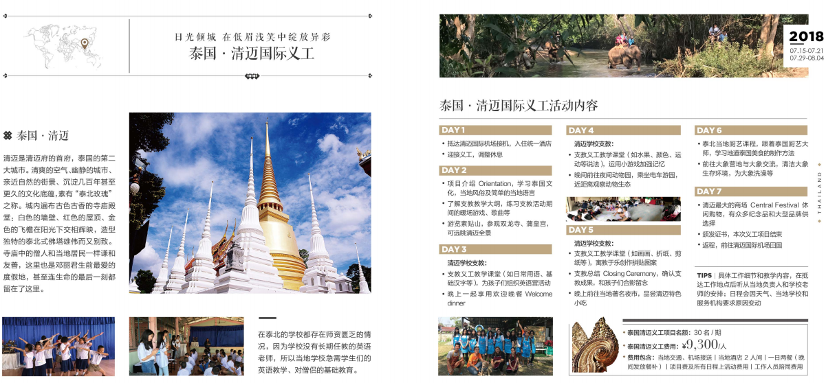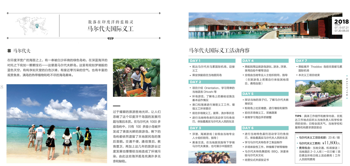 国际青年义工项目专注拓展中国中学生国际视野、培养全球意识、增强个人国际竞争力,地点覆盖马尔代夫、斯里兰卡、泰国、印度、尼泊尔等。种类多样,主要包括孤儿院与学校支教、老人辅助、环保项目、简单建筑工作和社区交流活动
