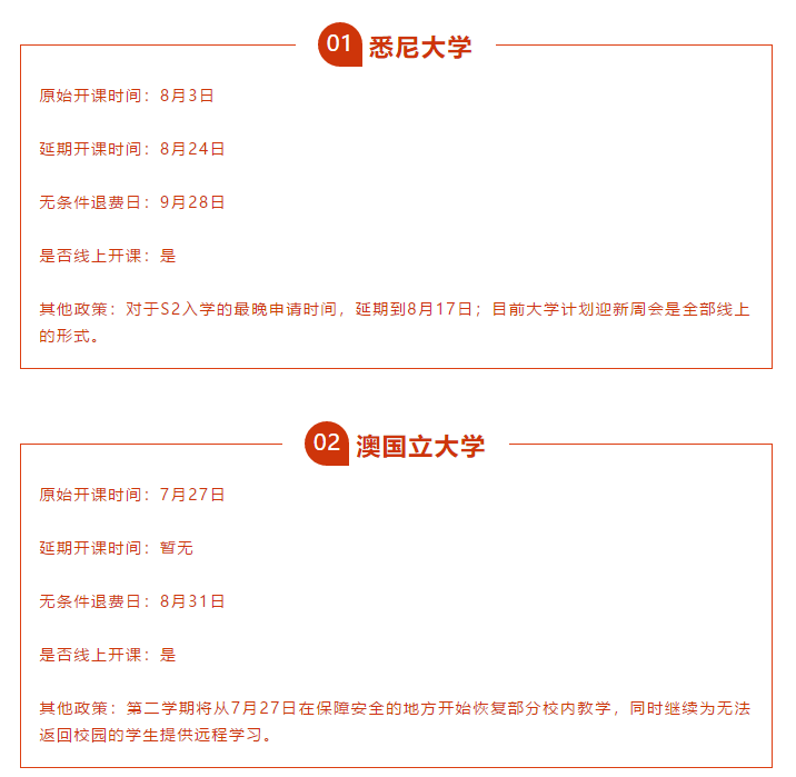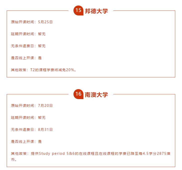 可以看到,目前而言,很多澳洲院校纷纷选择了线上授课的方式,同时也有不少院校延迟了开学时间。
