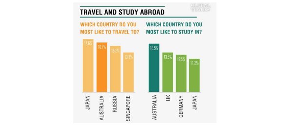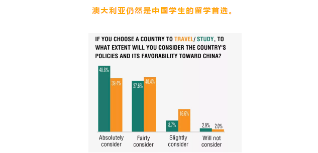 受访者还选择了“最适合留学的国家”,澳大利亚以16.5%的比例排名第一。也就是说,澳大利亚仍然是中国人留学和旅游的首选!