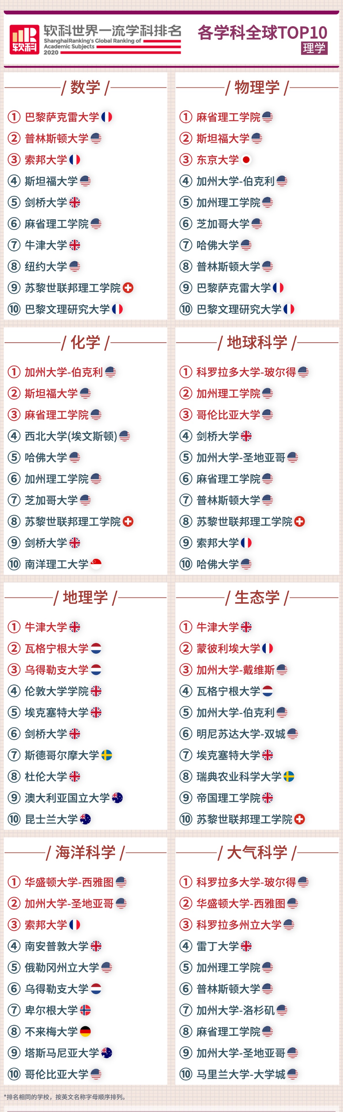 北京时间6月29日,2020年软科世界一流学科排名 (ShanghaiRanking's Global Ranking of Acaemic Subjects) 发布!。 2020年排名覆盖54个学科,涉及理学、工学、生命科学、医学和社会科学五大领域。