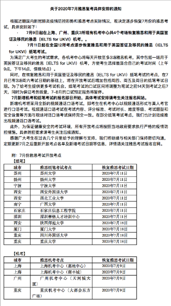 不过由于目前北京疫情的影响,还不能全国统一复考,雅思官方将逐步开放部分考点