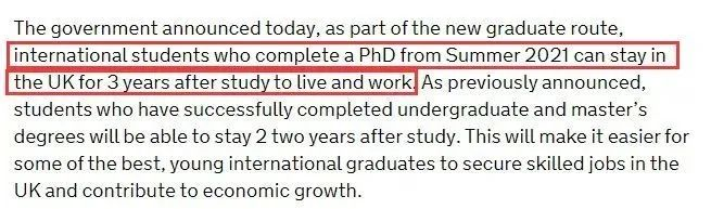 直到今天又传来最新政策:从2021年毕业的这一届博士国际学生开始,将有资格申请3年的PSW签证!
