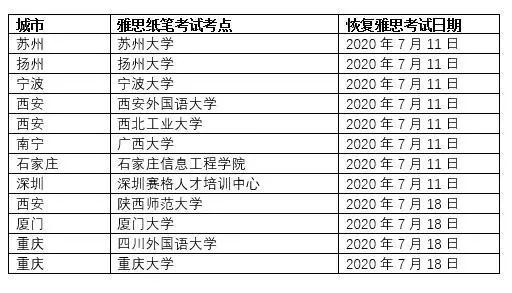 * 7月11日起在全国12所考点逐步恢复雅思和用于英国签证及移民的雅思(ielts for ukvi)纸笔考试。