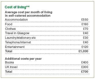 学校为本科生提供7个住宿区,硕士生有四个住宿区,这些住宿区距离格拉斯哥大学主校区Gilmorehill Campus的路程步行2到25分钟不等。