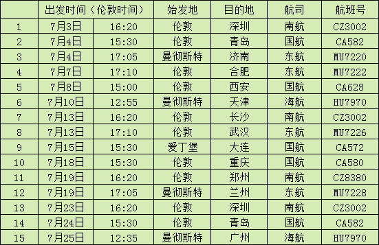 根据中国外交部部署,驻英使领馆将继续协助确有困难急需回国的留学人员等搭乘临时航班回国。现就7月份临时航班信息公布如下:
