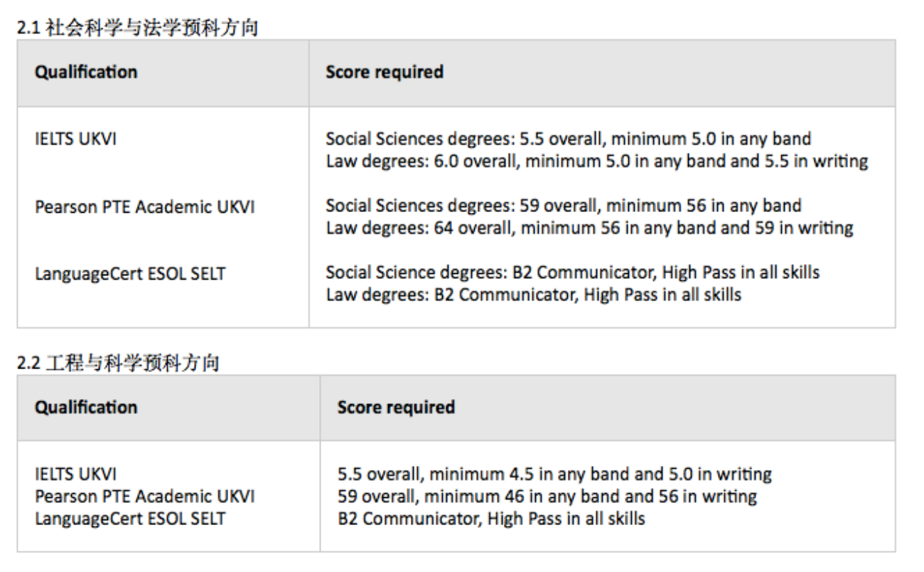 2. 线下课程准入语言要求(ukvi签证强制要求):****