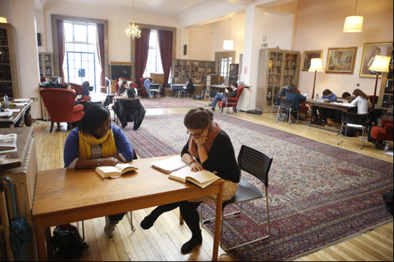 LSE最富盛名的政治经济图书馆修建于1896年,是英国的国家社会科学图书馆,同时也是全球最大的社会科学图书馆。这里的标志是从上贯穿而下的螺旋型楼梯,图书馆内有超过4百万本的图书杂志,二十多万份的电子书籍和期刊,多处自习室和小组学习区,500多台电脑,还有iMac和MacBook Air可供学生使用。图书馆还会开放不定时展览,展出图书馆的珍贵藏书。