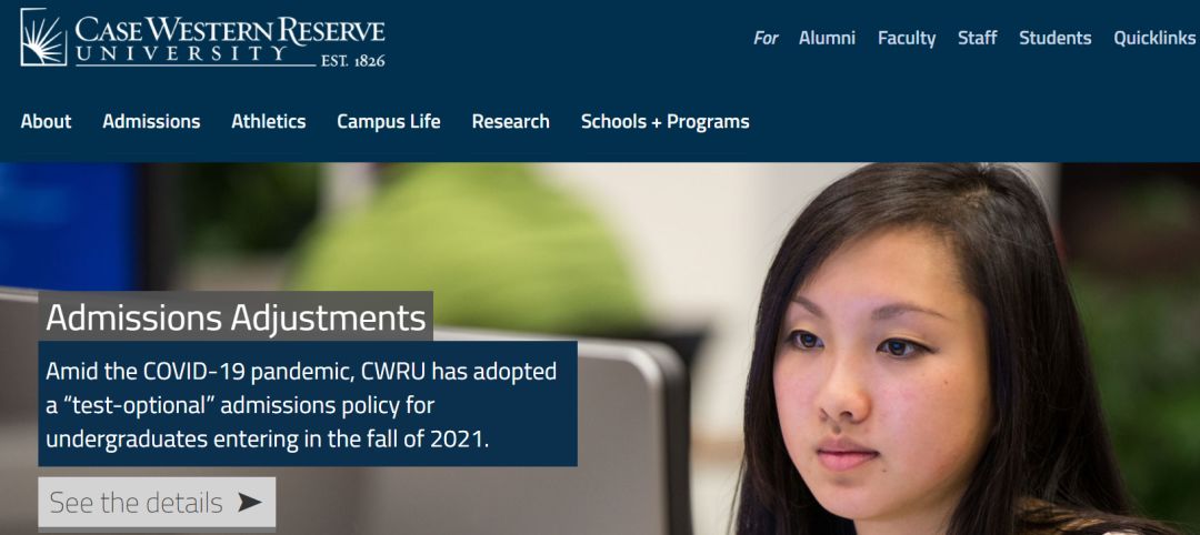 凯斯西储大学是一所因独立研究著称的全球顶级私立研究型大学。3月18日,凯斯西储大学宣布:2021秋季申请者无需提供sat/act成绩!即“test-optional”,不强制要求学生提交sat/act成绩。