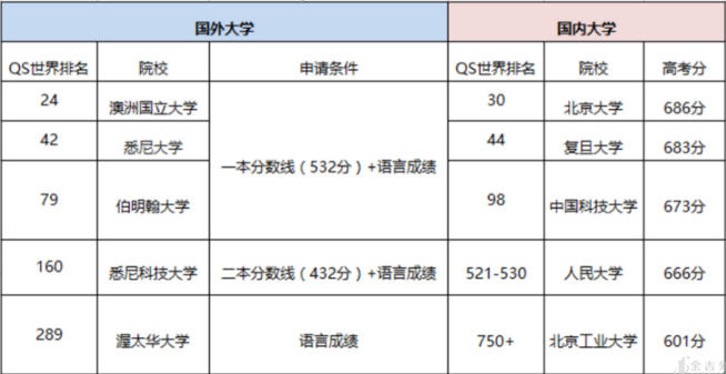 这部分同学可以考虑的是,在高考出分后,除了申请国内大学外,还可以用自己的高考成绩,附上英语成绩证明,来申请排名更靠前的海外大学,做两手准备!