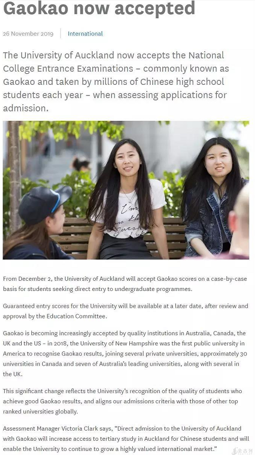 2020年起,新西兰八所公立大学悉数接受中国高考成绩的直录申请!