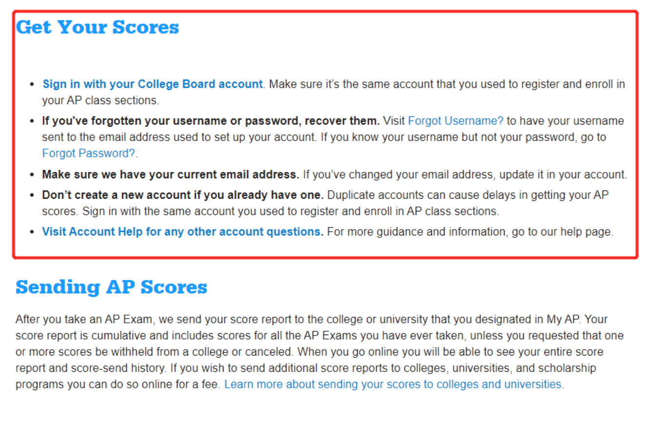 另外,学生最好也不要重复创建新账号。重复的账号会导致你的ap成绩被延迟发布,可以使用与注册ap考试时相同的账号登录。