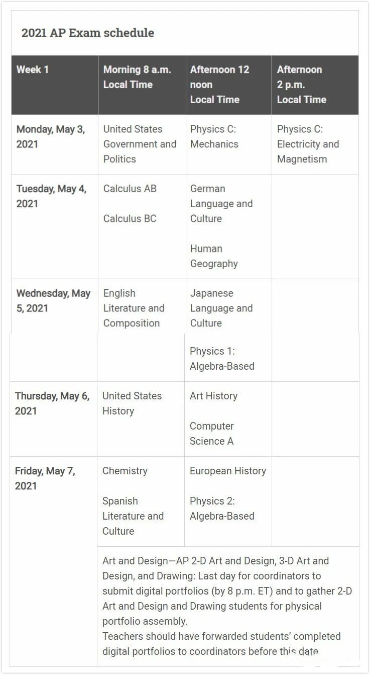 根据官网公布,若无意外,2021年ap考试将于5月的两个星期内进行: 5月3日至7日和5月10日至14日。 明年需要考ap的同学需要提前做好准备了。