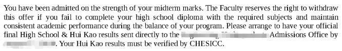 Dalhousie的官网上只写出了,普高学制的同学申请,需要提供会考成绩和高中毕业证明,对高考没有任何明文要求。所以达尔豪斯大学对于高考成绩的要求是:可自行决定。
