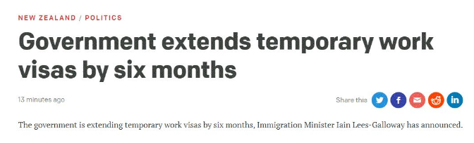此前,不少新西兰公司近期都在担忧自己的劳动力问题,成千上万的临时工签持有者的签证即将到期,雇主将面临重新招人、培训的困局。此次政府延长工签,也是对雇主担忧的一个回应。