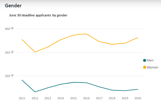 截止6月30日,申请2020年入学英国本科的人数超过 65万 人,是四年来的最高值。