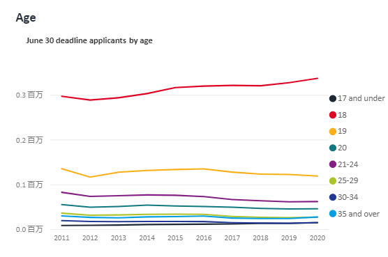 数据也可以证明这一点。 ucas在每个申请季都会发布三次申请量统计,分别对应前面说的三个节点。