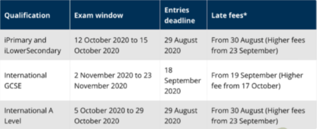 we will be aing a number of subjects to our existing international as/a level autumn series, incluing those assessments where the final opportunity for stuents to sit these woul have been in may/june 2020. please note that the complete autumn term scheule is uner review an existing timing an scheules for the current ial october series are subject to change. we will confirm further etails on this as soon as possible.