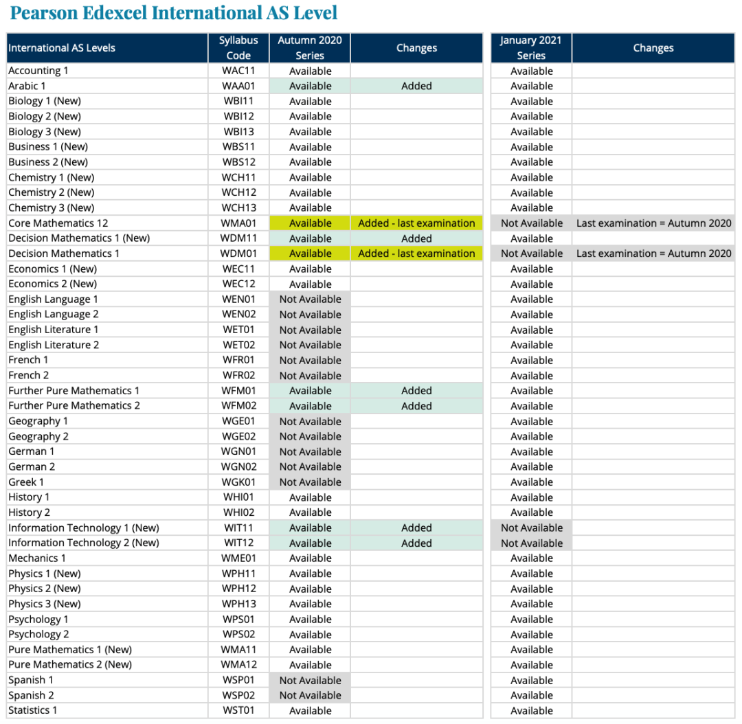 在2020秋季考试中,cie为考生新增了一些以往只在夏季考试中才有的科目。增加考试科目如下: