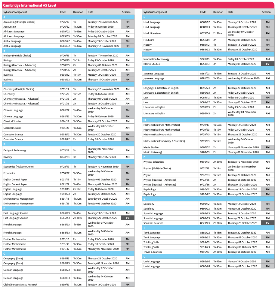 cie考试局as-level考试安排: