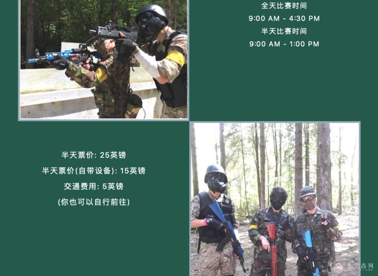这是一项以气弹枪为装备的紧张刺激的“生存游戏”!就类似于国内的真人CS。穿上各国军人的服装、戴上专业防护器材、投入到“战场”中英勇“杀敌”,恍如战争冲锋陷阵的真实再现。在这项游戏中能够极大地锻炼同学们的团队合作以及战术运用能力。
