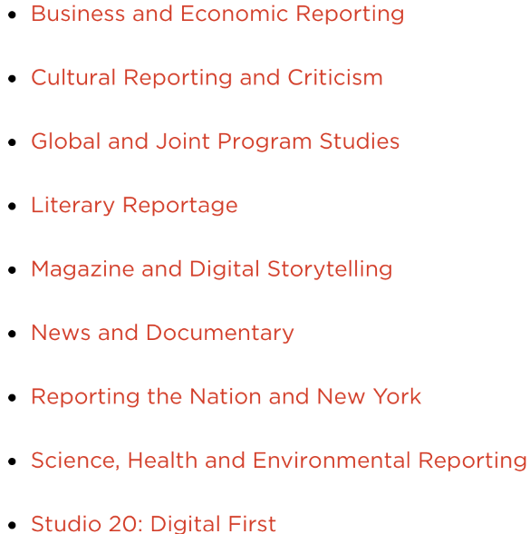 纽约大学和哥伦比亚大学同样是以新闻报道而出名,所以它们的学科设置上也有很多相同之处,但是纽约大学与哥伦比亚大学相比更偏向于商业新闻报导这一领域。专业设置多以Business an Economic Reporting为主,并且在这一领域有很强的权威性。 ****