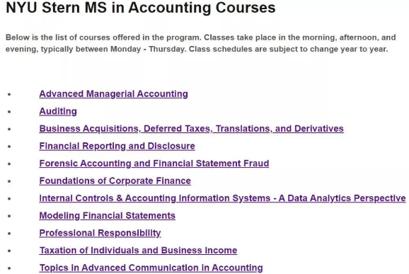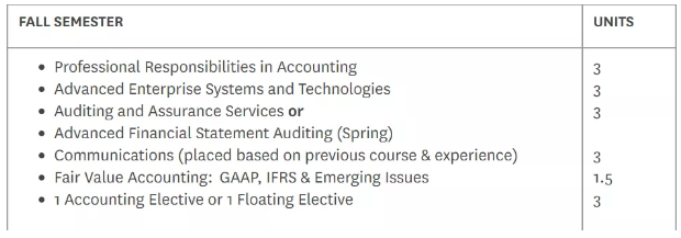 没有会计本科学位的同学也可以申请,但是需要多上一个summer的相关准备课程。以下是该项目秋季学期的一些课程安排。