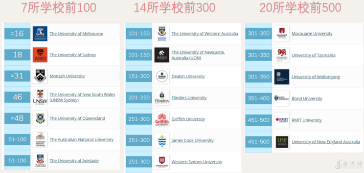 临床医学作为澳洲大学的优势专业之一,充分体现出了澳洲国家在医疗健康领域的领导地位。根据 2020 年 QS 世界大学医学专业排名数据显示,澳洲有5所大学被列入世界前 50,他们分别是我们常说的澳洲八大有悉尼大学,墨尔本大学,昆士兰大学,新南威尔士大学和蒙纳士大学,阿德莱德大学及澳洲国立大学也纷纷进入医学世界前100的大学行列。澳洲 41 所大学中,其中 20所的医学专业排名都进入了世界前500。所以显而易见,澳洲的医学专业在世界上来看是水平一流且卓越的。