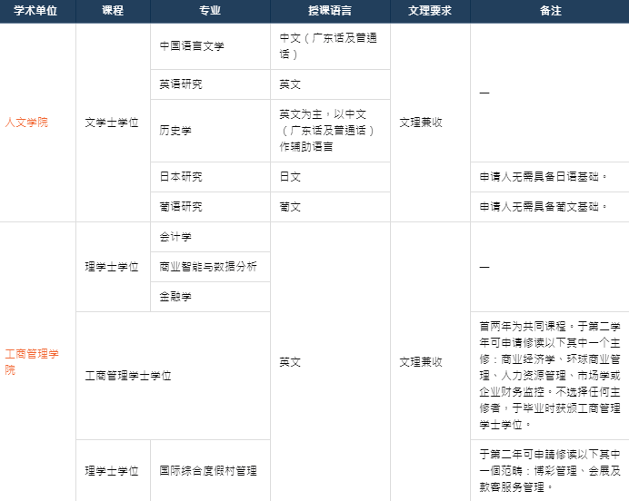 澳门旅游学院共2大学院(酒店管理学院、旅游管理学院)供内地生申请本科。