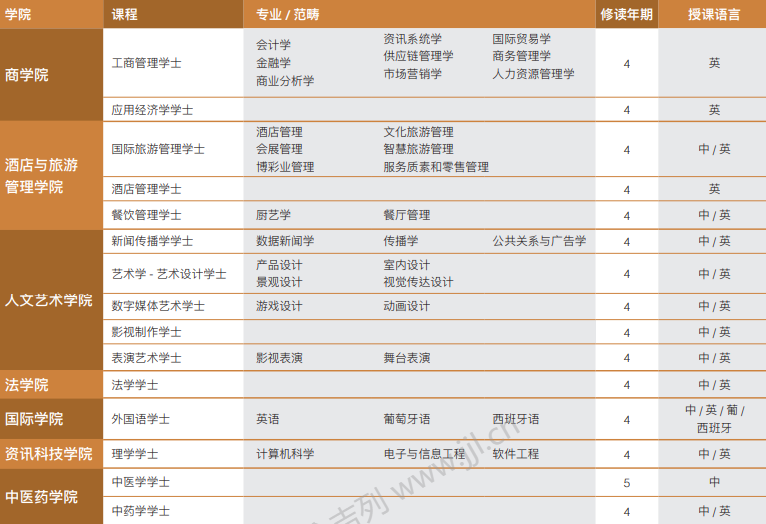 澳科大本科部分专业