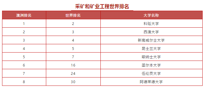 再比如,同为工程类方向,从专业研究实力排名中可以看出, 澳洲的采矿和矿业工程方向研究就比较发达 。