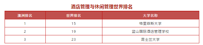 比如澳洲非常热门的酒店管理与休闲管理专业,科研实力最强的是:格里菲斯大学,该大学在酒店管理方向不仅科研实力强劲,而且大学非常重视教学,学生无论是就读本科还是研究生都是很好的选择。