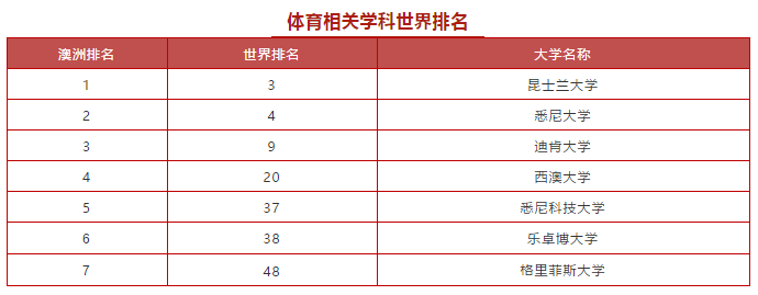 再比如,新兴的 体育相关学科 方向,悉尼科技大学,迪肯大学和乐卓博大学的排名就非常靠前,甚至超过了部分澳洲八大名校。