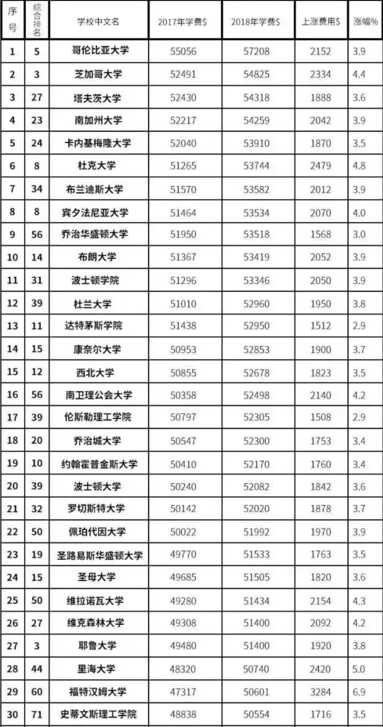 在这次调价后, 藤校与名校都挤进了六,七万美元一年学杂费兵团。 这意味着每年 50 万人民币的学费,是每个留学生家庭的必备。