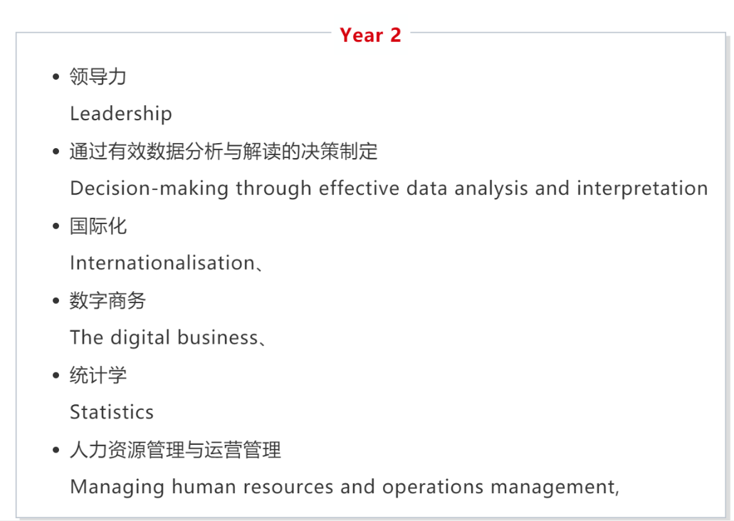课程介绍 商务管理学士的课程理念与想要在商务管理领域大展身手同学的理想完美契合,通过本专业学习,学生能对管理方面的问题和知识有着更全面的思考和理解,注重提升学生在科技运营技能、领导力、管理创新、团队凝聚力、市场资产运营以及全球化商业环境下的管理技能,助力学生成为具有‘全球化视野、国际化思维’,具备‘专业化知识、复合型能力’的商务人才。