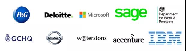沃森(Waterstons)、埃森哲(Accenture)、IBM、宝洁(P&G)、日产(NISSAN)、迪士尼、英国电信、高盛、索尼等。