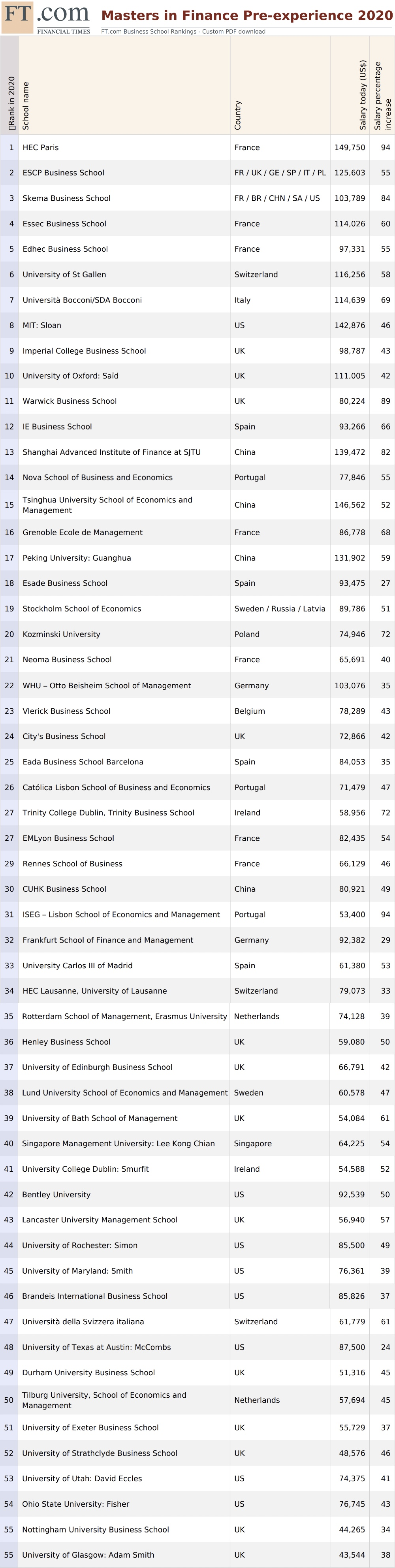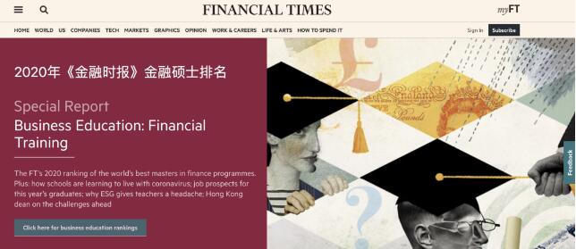 近日,《金融时报》(Financial Times) 发布了2020年全球金融硕士排名!