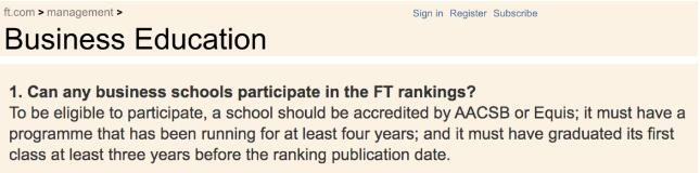 此次FT金融硕士排名共59所商学院上榜。所有参与FT商学院排名的院校需符合: